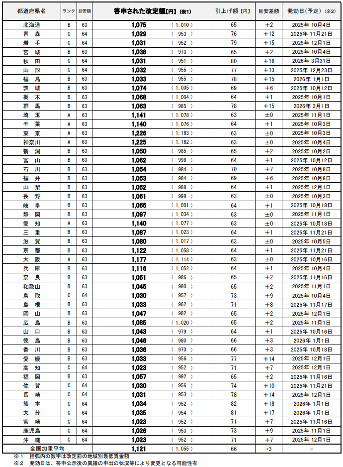 令和7年度の都道府県別最低賃金の答申額が、9月5日に出揃いました。